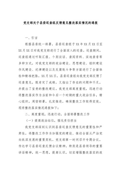 / 【七哥公文】2024年:党支部关于县委巡查组反馈意见整改落实情况的通报+更多免费公文+VX:QiGeGongWen2024