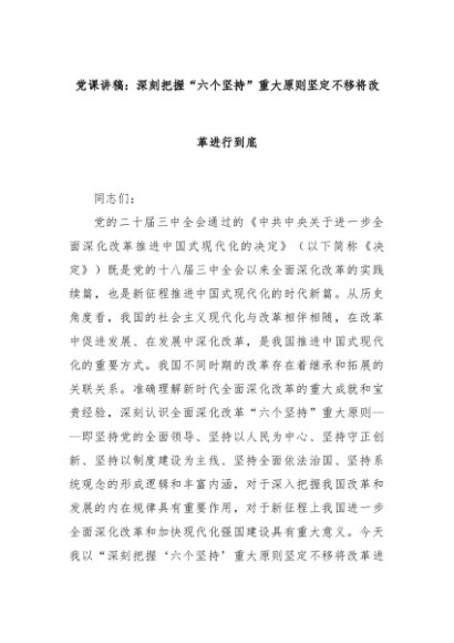 【七哥公文】2024年:党课讲稿:深刻把握“六个坚持”重大原则坚定不移将改革进行到底+更多免费公文+VX:QiGeGongWen2024