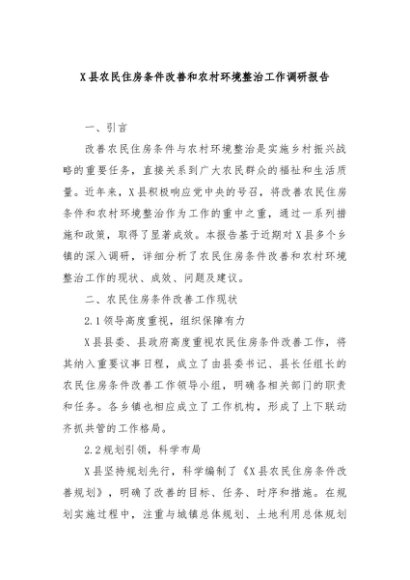 / 【七哥公文】2024年:X县农民住房条件改善和农村环境整治工作调研报告+更多免费公文+VX:QiGeGongWen2024
