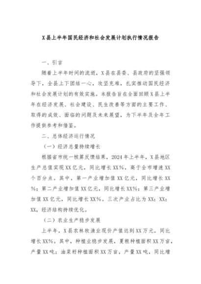 / 【七哥公文】2024年:X县上半年国民经济和社会发展计划执行情况报告+更多免费公文+VX:QiGeGongWen2024