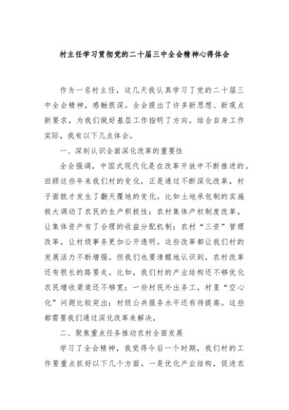 / 【七哥公文】2024年:村主任学习贯彻党的二十届三中全会精神心得体会+更多免费公文+VX:QiGeGongWen2024