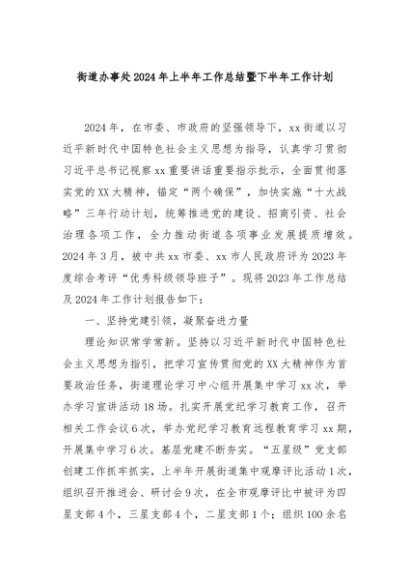 【七哥公文】2024年:街道办事处2024年上半年工作总结暨下半年工作计划+更多免费公文+VX:QiGeGongWen2024