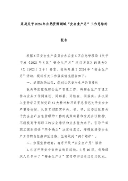 【七哥公文】2024年:某局关于2024年自然资源领域“安全生产月”工作总结的报告+更多免费公文+VX:QiGeGongWen2024
