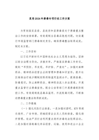 / 【七哥公文】2024年:某局2024年禁毒专项行动工作方案+更多免费公文+VX:QiGeGongWen2024
