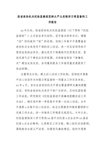 【七哥公文】2024年:驻省政协机关纪检监察组坚持从严从实做好日常监督的工作报告+更多免费公文+VX:QiGeGongWen2024