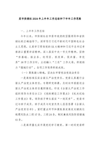 【七哥公文】2024年:某市供销社2024年上半年工作总结和下半年工作思路+更多免费公文+VX:QiGeGongWen2024