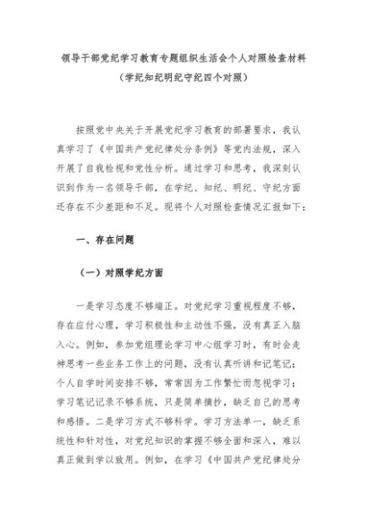 【七哥公文】2024年:领导干部党纪学习教育专题组织生活会个人对照检查材料(学纪知纪明纪守纪四个对照)+更多免费公文+VX:QiGeGongWen2024