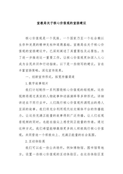 【七哥公文】2024年:宣教局关于核心价值观的宣扬建议+更多免费公文+VX:QiGeGongWen2024