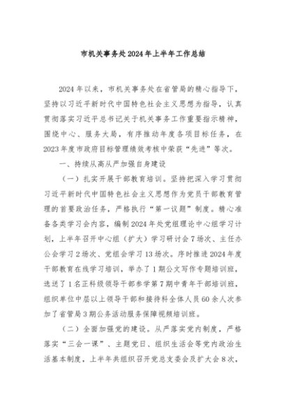 / 【七哥公文】2024年:市机关事务处2024年上半年工作总结+更多免费公文+VX:QiGeGongWen2024