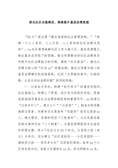 / 【七哥公文】2024年:深化社区功能建设、持续提升基层治理效能+更多免费公文+VX:QiGeGongWen2024