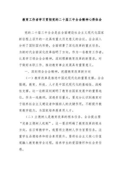 / 【七哥公文】2024年:教育工作者学习贯彻党的二十届三中全会精神心得体会+更多免费公文+VX:QiGeGongWen2024