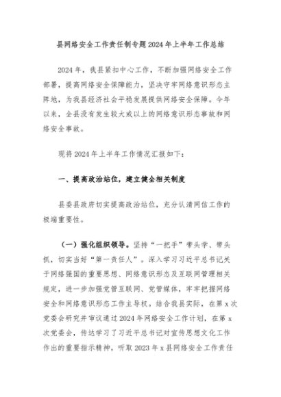 / 【七哥公文】2024年:县网络安全工作责任制专题2024年上半年工作总结+更多免费公文+VX:QiGeGongWen2024