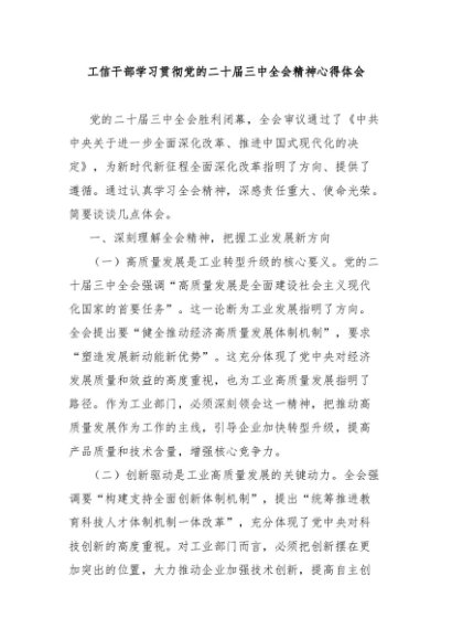 / 【七哥公文】2024年:工信干部学习贯彻党的二十届三中全会精神心得体会+更多免费公文+VX:QiGeGongWen2024