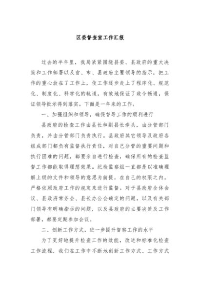 / 【七哥公文】2024年:区委督查室工作汇报+更多免费公文+VX:QiGeGongWen2024