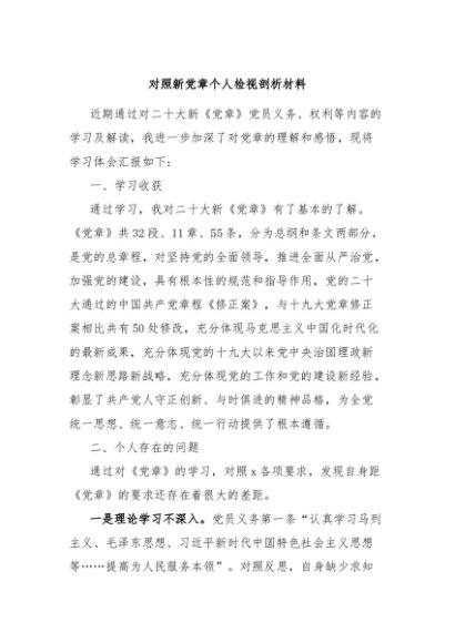 / 【七哥公文】2024年:对照新党章个人检视剖析材料+更多免费公文+VX:QiGeGongWen2024