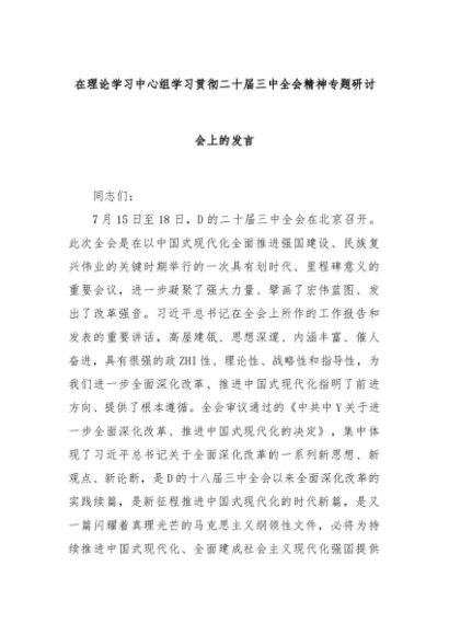 【七哥公文】2024年:在理论学习中心组学习贯彻二十届三中全会精神专题研讨会上的发言+更多免费公文+VX:QiGeGongWen2024