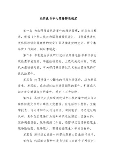 【七哥公文】2024年:处罚投诉中心案件移送制度+更多免费公文+VX:QiGeGongWen2024