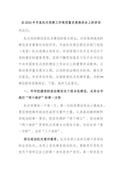 【七哥公文】2024年:在2024年市直机关党建工作高质量发展推进会上的讲话+更多免费公文+VX:QiGeGongWen2024