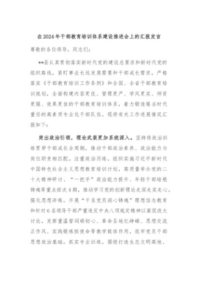 【七哥公文】2024年:在2024年干部教育培训体系建设推进会上的汇报发言+更多免费公文+VX:QiGeGongWen2024