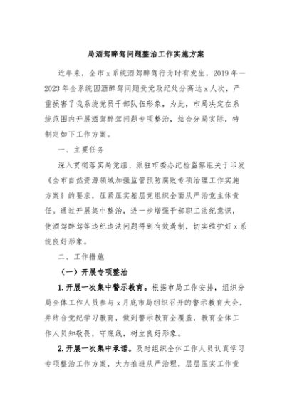 / 【七哥公文】2024年:局酒驾醉驾问题整治工作实施方案+更多免费公文+VX:QiGeGongWen2024