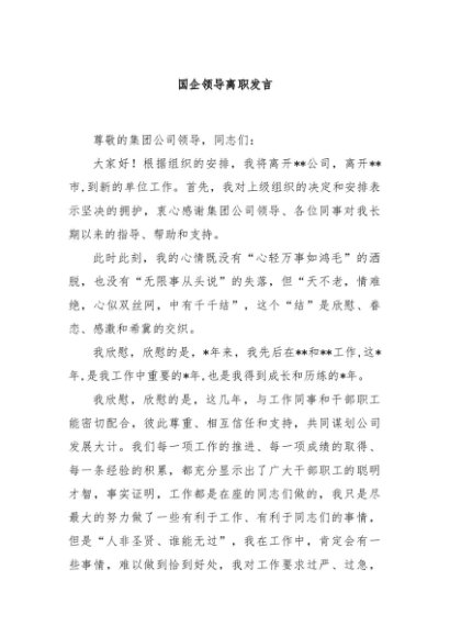 【七哥公文】2024年:国企领导离职发言+更多免费公文+VX:QiGeGongWen2024