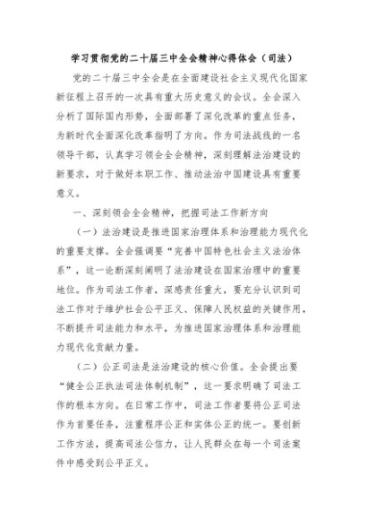 / 【七哥公文】2024年:学习贯彻党的二十届三中全会精神心得体会(司法)+更多免费公文+VX:QiGeGongWen2024