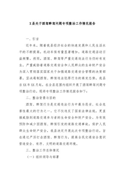 / 【七哥公文】2024年:X县关于酒驾醉驾问题专项整治工作情况报告+更多免费公文+VX:QiGeGongWen2024