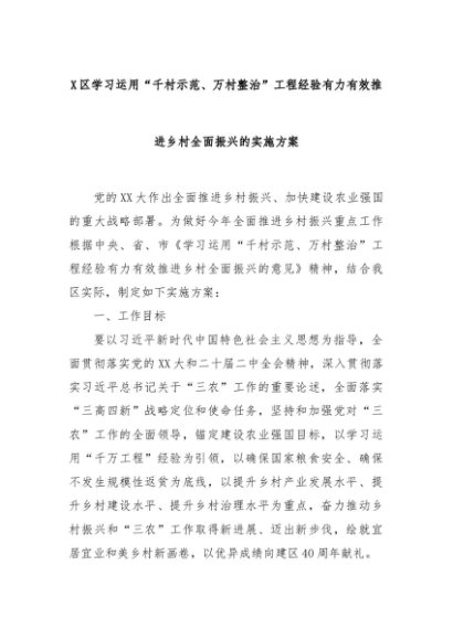 【七哥公文】2024年:X区学习运用“千村示范、万村整治”工程经验有力有效推进乡村全面振兴的实施方案+更多免费公文+VX:QiGeGongWen2024