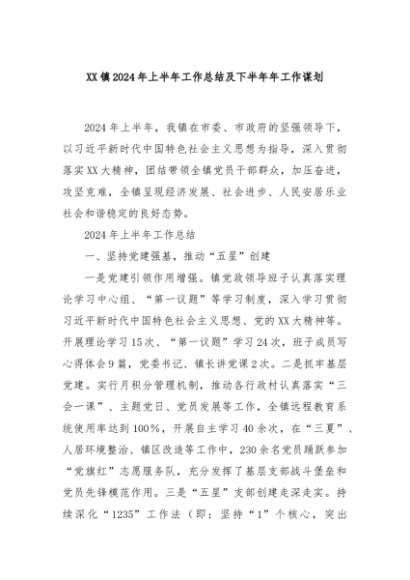 / 【七哥公文】2024年:XX镇2024年上半年工作总结及下半年年工作谋划+更多免费公文+VX:QiGeGongWen2024