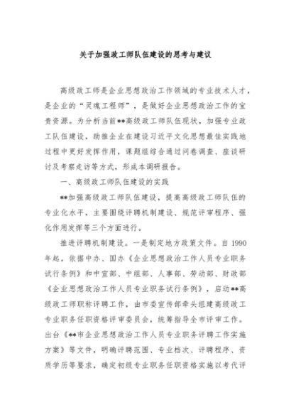 / 【七哥公文】2024年:关于加强政工师队伍建设的思考与建议+更多免费公文+VX:QiGeGongWen2024