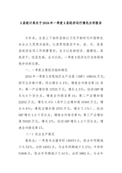 【七哥公文】2024年:X县统计局关于2024年一季度X县经济运行情况分析报告+更多免费公文+VX:QiGeGongWen2024