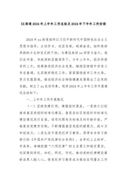 【七哥公文】2024年:XX街道2024年上半年工作总结及2024年下半年工作安排+更多免费公文+VX:QiGeGongWen2024