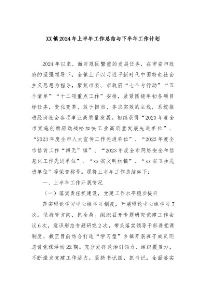 / 【七哥公文】2024年:XX镇2024年上半年工作总结与下半年工作计划+更多免费公文+VX:QiGeGongWen2024