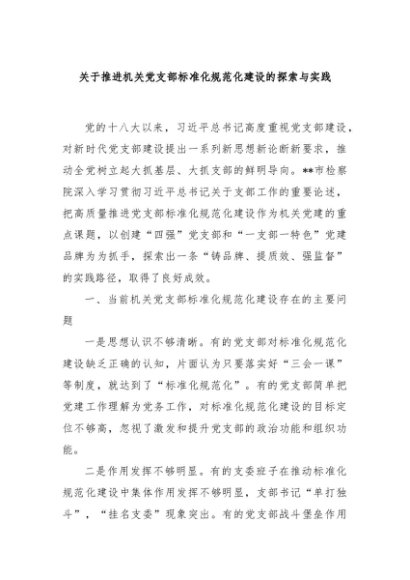 / 【七哥公文】2024年:关于推进机关党支部标准化规范化建设的探索与实践+更多免费公文+VX:QiGeGongWen2024