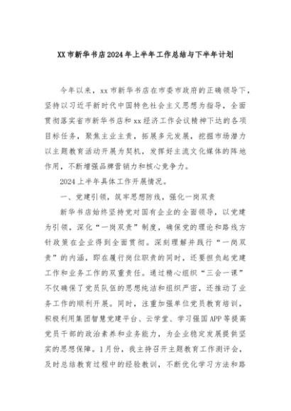 【七哥公文】2024年:XX市新华书店2024年上半年工作总结与下半年计划+更多免费公文+VX:QiGeGongWen2024