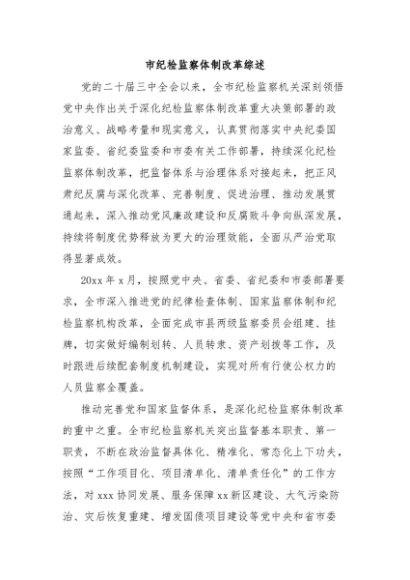 【七哥公文】2024年:市纪检监察体制改革综述+更多免费公文+VX:QiGeGongWen2024
