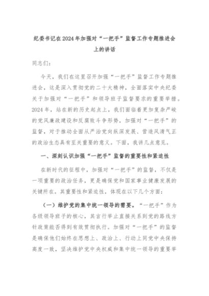【七哥公文】2024年:纪委书记在2024年加强对“一把手”监督工作专题推进会上的讲话+更多免费公文+VX:QiGeGongWen2024