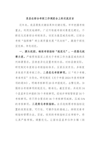 / 【七哥公文】2024年:某县在综合考核工作调度会上的交流发言+更多免费公文+VX:QiGeGongWen2024