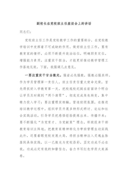 【七哥公文】2024年:副校长在党校班主任座谈会上的讲话+更多免费公文+VX:QiGeGongWen2024