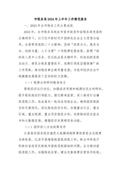 / 【七哥公文】2024年:市税务局2024年上半年工作情况报告+更多免费公文+VX:QiGeGongWen2024