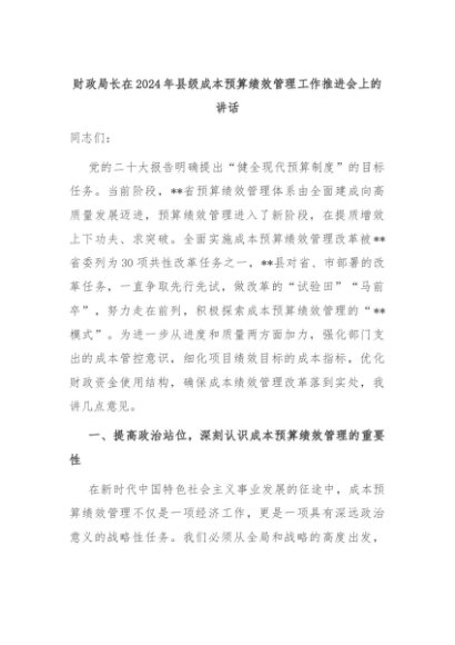 【七哥公文】2024年:财政局长在2024年县级成本预算绩效管理工作推进会上的讲话+更多免费公文+VX:QiGeGongWen2024