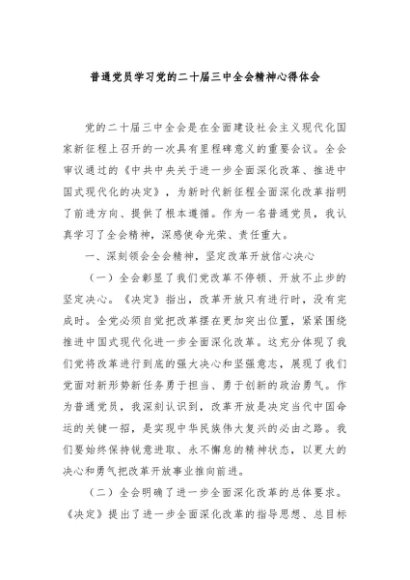 / 【七哥公文】2024年:普通党员学习党的二十届三中全会精神心得体会+更多免费公文+VX:QiGeGongWen2024