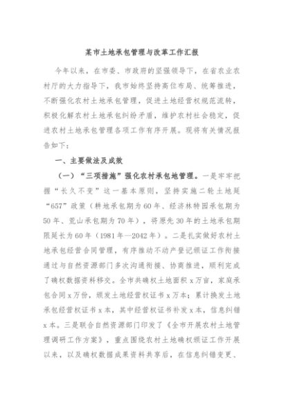 / 【七哥公文】2024年:某市土地承包管理与改革工作汇报+更多免费公文+VX:QiGeGongWen2024