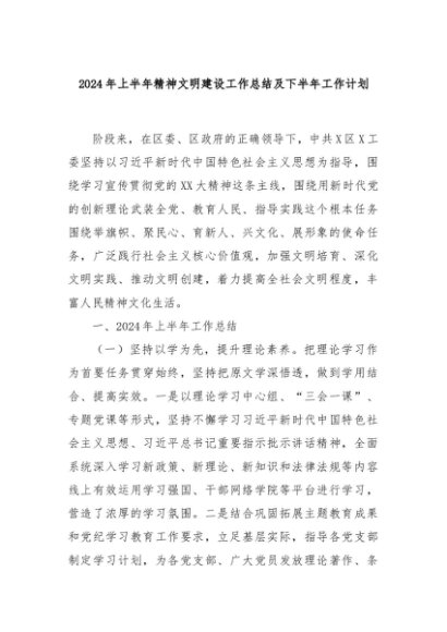【七哥公文】2024年:2024年上半年精神文明建设工作总结及下半年工作计划+更多免费公文+VX:QiGeGongWen2024