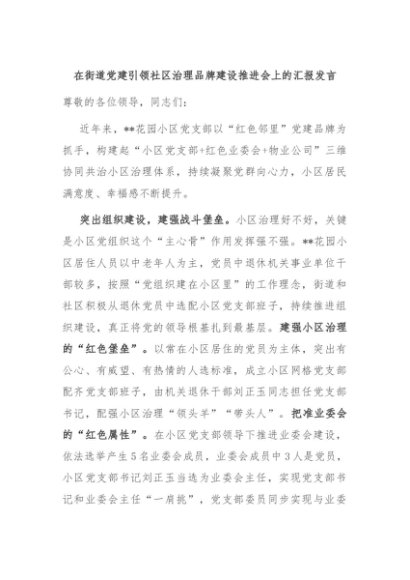/ 【七哥公文】2024年:在街道党建引领社区治理品牌建设推进会上的汇报发言+更多免费公文+VX:QiGeGongWen2024