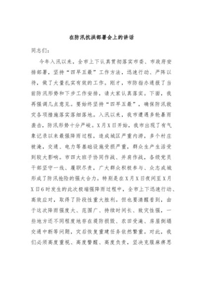 / 【七哥公文】2024年:在防汛抗洪部署会上的讲话+更多免费公文+VX:QiGeGongWen2024