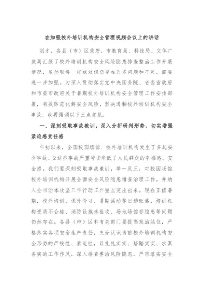 / 【七哥公文】2024年:在加强校外培训机构安全管理视频会议上的讲话+更多免费公文+VX:QiGeGongWen2024