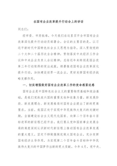 / 【七哥公文】2024年:在国有企业改革提升行动会上的讲话+更多免费公文+VX:QiGeGongWen2024