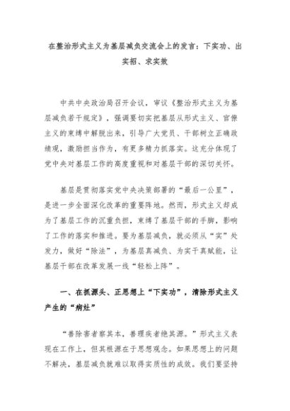 【七哥公文】2024年:在整治形式主义为基层减负交流会上的发言:下实功、出实招、求实效+更多免费公文+VX:QiGeGongWen2024