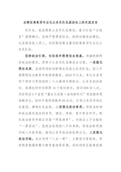/ 【七哥公文】2024年:在建设高素质专业化公务员队伍座谈会上的交流发言+更多免费公文+VX:QiGeGongWen2024